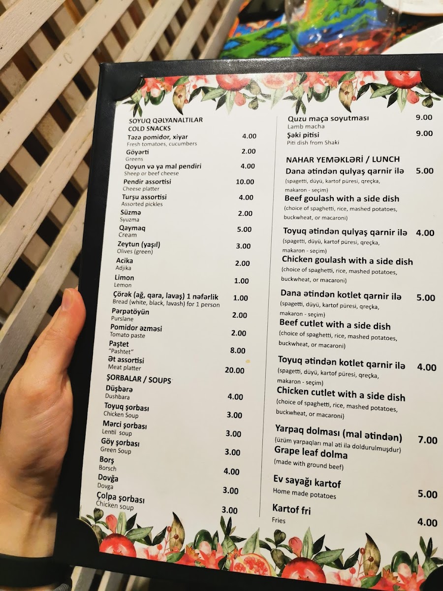 Otdix offers a menu rooted in traditional Azerbaijani flavors served in a setting that feels both welcoming and unpretentious. The focus is on hearty, shareable dishes that pair well with casual gatherings or relaxed meals after a day exploring Baku. Whether you're stopping by for a mid-afternoon bite or a filling dinner, the selection suits a variety of occasions where fresh, well-prepared food is appreciated.